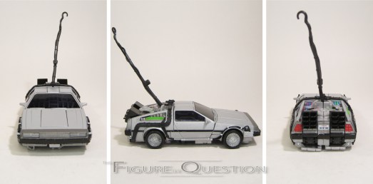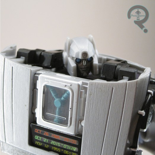 Gigawatt’s alt-mode is kind of the major selling point here. As a BttF-branded tie-in, there’s really only one logical choice of vehicle mode, and that’s Doc Brown’s modified Delorian DMC-12. As with pretty much any BttF tie-in version of the vehicle, it doesn’t actually sport any of the specific Delorian branding or markings. It’s clearly the same car, of course, and it’s a good recreation of it at that. The transformation sequence is effectively the same as Sideswipe’s, so it’s a fairly intuitive one, but it also looks quite convincing in vehicle mode. The design of the car allows for the wheels to be switched into hovercar mode, and you can also use the “stock” of the gun to add the Mr. Fusion, or hook the “whip” up to be the antenna used to catch the lightning strike at the end of the first movie. It makes it quite an inclusive selection of looks from the movie, which is certainly fun.
