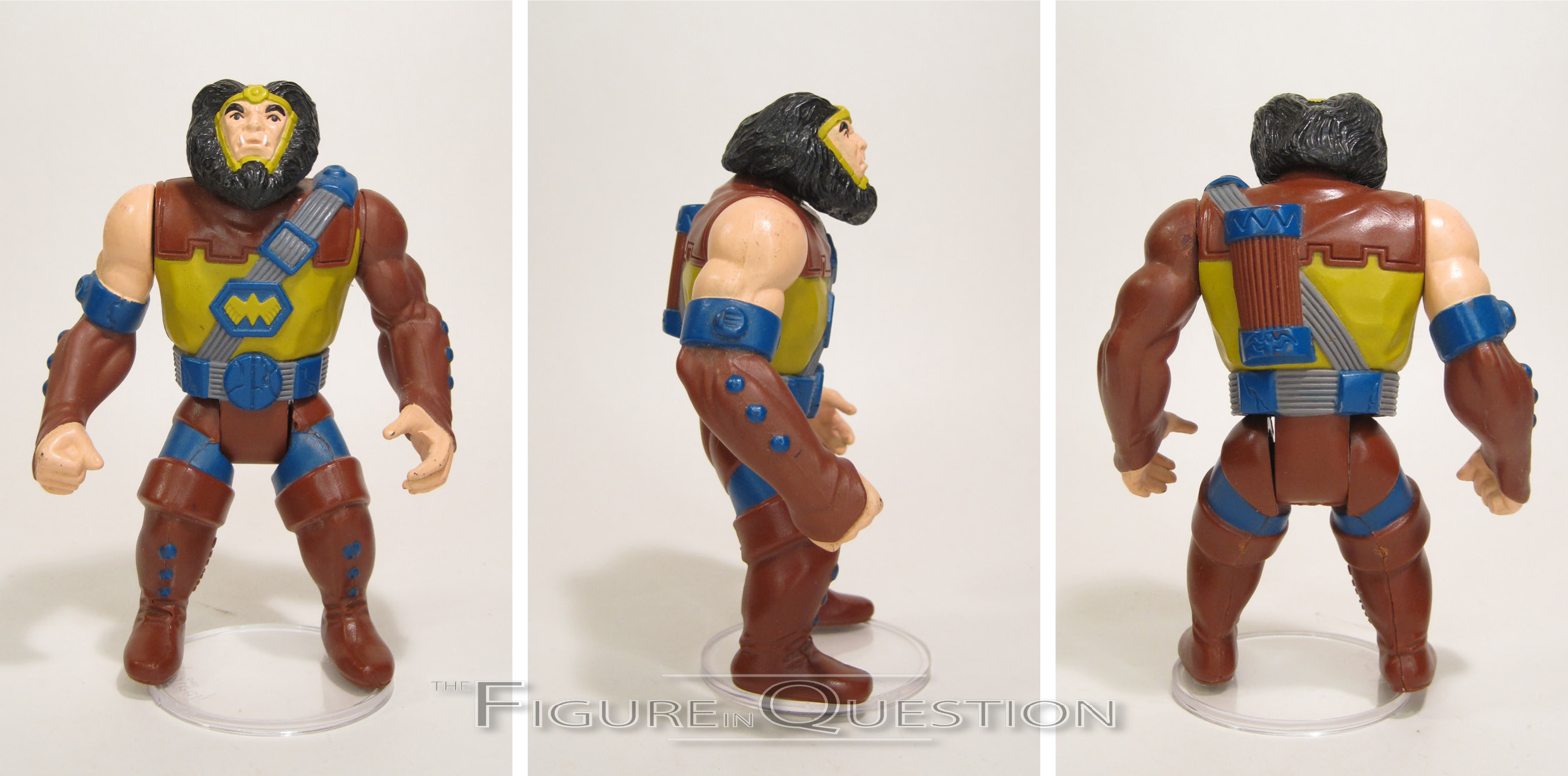 Kalibak was released in 1985, as part of Kenner’s second year of Super Powers figures. As with the rest of the Fourth World figures in the line, this would be his debut action figure, and it would remain his only figure until Mattel got back around to him in 2009 as part of their DC Universe Classics line. Heck of a gap there, huh? There was definitely a preferred son of Darkseid in the toy world is all I’m saying. The figure stands just shy of 5 inches tall (he’s got a bit of a hunch, which would place him at closer to Darkseid’s height were he standing straight up) and he’s got 5 points of articulation. Kalibak lacks the knee joints sported by most of the line, presumably to give him a slightly more stable stance with the hunch and everything. He still has a bit of trouble remaining standing even so, due to his hip joints being a little loose from how the action feature works. Most of the Fourth World characters got rather changed-up designs for the line, still courtesy of Jack Kirby, of course. Kalibak’s design was new, but he actually had a rather evolving design throughout Kirby’s actual run on New Gods, so this was really just the next step in that evolution. It’s honestly one of the best of the updated designs, and the one that really has the most lasting influence on the character’s main look going forward. The sculpt does a pretty nice job of capturing Kalibak’s larger build, and while he’s a little bit goofy looking, that’s on-brand for Kalibak, so it works out better here than it does for, say, Steppenwolf. Kalibak’s paint work is pretty straight forward. A lot of the Fourth World designs were heavy on green in the comics, and Kalibak was included in that. For the Super Powers designs, they leaned a little more into browns and warmer colors, since there was kind of a shortage of those colors in the DC roster. Kalibak is largely brown and yellow, with a bit of blue. It’s not a bad look, and the application is generally pretty clean. Kalibak is packed with his Beta-Club, which is convenient for use with his “Power Action Beta-Club Swing.” When is legs are squeezed together, the left arm swings in and out, which is actually a pretty cool feature.