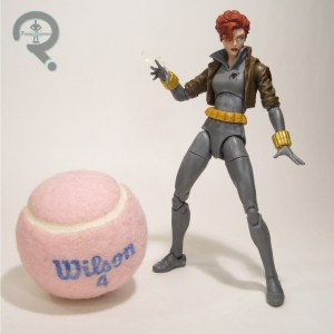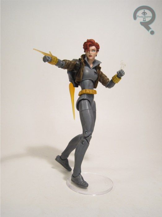 Black Widow was a Walmart-exclusive Marvel Legends release, initially showing up in the summer of 2020 to coincide with the original planned release date for Black Widow.  As with most Walmart-exclusives, it was not super easy to find, and this wasn’t aided by the whole pandemic thing.  Ultimately, she would up being offered up again through Entertainment Earth, and by extension through a good number of Fan Channel locations.  This version of Widow is sporting her grey jumpsuit and Avengers-branded bomber jacket from the early ’90s.  Notably, this same design was also the one used by her very first action figure, back during the Toy Biz 5-inch days, and it also showed up once prior as the variant color scheme for the Widow from the Legends two-packs in 2010.  The figure stands just over 6 inches tall and she has 27 points of articulation.  Her sculpt is a mix of old and new.  The bulk of the body is the Phoenix mold, with the upper arms and jacket overlay from Rogue.  She gets a new head, upper torso (which was subsequently re-used on Firestar), and add-ons for her bracelets and belt.  It’s a good mix of parts, which does a pretty spot-on job of capturing this particular version of Widow.  In particular, I really like how the head sculpt turned out.  The hair really captures the look and feel really well, right down to the one lock in front of her right eye.  It’s honestly one of Hasbro’s nicest female heads, and certainly my favorite of the Widow sculpts they’ve done.  The paint work on this figure is pretty decent.  The bulk of the color work is via molded plastic colors, but the work on the two spiders is sharp, and the face and hair are particularly dynamic and lively looking.  She’s even got the Avengers insignia on both shoulders of the jacket, which is super cool.  Black Widow is packed with two sets of hands (fists and open gesture), three different sets of bracelets (standard, blast effect, and smoke), a jetpack piece, and two rocket effects for the jetpack.  It’s a really great selection of extras.  About the only other thing I could think of to really seal the deal might be an alternate set of unjacketed arms, but that’s really a minor complaint, given the other awesome stuff included.