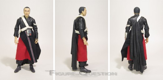 Chirrut Imwe is figure 4 in the Rogue One set of Black Series figures. He’s a reissue of the #36 figure from Phase III of the line, which hit during the latter part of the original Rogue One run. The figure stands a little over 5 1/2 inches tall and he has 27 points of articulation. The Rogue One figures were, unfortunately, not the line at its best when it came to articulation schemes. Chirrut represents one of the worst instances, honestly. The range on the arms and legs, especially at the elbows and knees, is quite restricted, with the elbows barely making even a full 90 degrees. In addition, the actual layout and functionality of the joints is just kind of odd. You can get some poses out of him that work, but they’re not particularly intuitive. Chirrut’s sculpt was unique to him at the time, and remains so to this date. It, like the articulation scheme it sports, is a product of