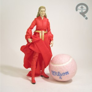 Princess Buttercup is part of the first standard series of McFarlane’s Princess Bride line. She’ll be back again for a variant in series 2, again with the actually putting a girl toy out there. How crazy. This first release gives us Buttercup in her red dress that she wears during the horse ride that leads to her capture by Vizzini and his crew. It’s the look she sports for the first half or so of the movie, and is generally one of her most distinctive, so it’s well-chosen. The figure stands 6 3/4 inches tall and she has 35 points of articulation. In a fashion typical of modern McFarlane figures, there’s a decent portion of the articulation that’s just there for the sake of it being there, with little practical purpose. I mean, why does Buttercup need toe joints? That said, the joints do work a little better with the overall sculpt than some of the other figures the company has put out. Movement is fairly decent, and the joints don’t wind up breaking the sculpt too badly when used, so it’s an overall win. Buttercup’s sculpt is all-new. The legs and head might wind up being shared with the Series 2 Buttercup, so there’s already going to be some overlap, but it’s sensible. All things considered, the sculpt is actually not bad. The proportions aren’t nearly as wonky as other offerings, and the detailing on the outfit is actually pretty solid. The lower portion of the dress is soft-goods, which better from a movement standpoint. In terms of shaping, it has a bit too much of a train for it to be accurate to the red dress, suggesting that this might be sharing a pattern with the Series 2 wedding dress appearance. Buttercup’s head sculpt is a respectable offering. It’s not spot-on by any stretch, but given the generally fair features of Robin Wright, there aren’t a ton of immediate details to grab onto, which makes this sort of sculpt a good deal harder. The straight on view gets it pretty close, but the likeness is lost a bit from other angles. The general likeness is still certainly there, though, and it’s better than a lot of other McFarlane sculpts. The paint work on Buttercup is generally pretty okay, apart from the one, rather glaring thing, which is the eyes. Yes, for reasons only he can truly fathom, Todd decided to pull rank on a large number of figures currently in circulation and give them all some real serious side-eye, as opposed to the standard straight forward look. It’s not a terrible thing, and does actually allow for a lot of character to be gained. The trouble is, it’s very limiting. Were it an alternate head, it would be awesome, but as the only option, it really doesn’t work. Given that the figure’s only accessory is a stand, the extra head really would have been helpful to make her feel a little more worth the money, all things considered.