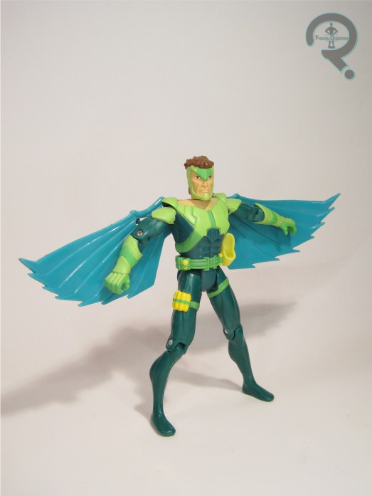 The Vulture was released in Series 2 of Toy Biz’s Spider-Man: The Animated Series tie-in line. He was based on the character’s revamped design, which got a special focus on the show. And, more specifically, he was actually kind of animation-based, in contrast to the likes of the X-Men line. The figure stands just shy of 5 inches tall and he has 11 points of articulation. I’ve actually looked at most of this sculpt before, albeit at twice the size, when its 10-inch equivalent was re-used for Savage Land Angel. It’s a rather awkward sculpt, all things considered. The body’s kind of scrawny and goony looking, and the head is rather large in comparative scale, which just makes the scrawny and goony thing even more apparent. The armor detailing is at least pretty sharply handled. You know, if you like your Vulture to be armored. The paint work on the figure is basic, but pretty well handled. There’s a little bit of bleedover on the edges of the lighter green, but otherwise it works well. Vulture was originally packed with a small gun sort of thing, meant for storing in his side holster, thought that piece is missing from mine (and most loose ones, honestly; it was super easy to lose). He also featured a “Spreading Wing Action”; squeezing his legs lifts his arms, thereby spreading his wings.