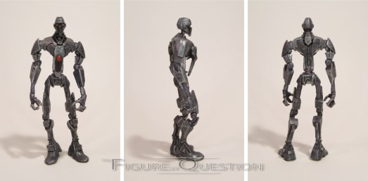 The Magnaguard is figure #22 in Hasbro’s Clone Wars tie-in line, as part of the fourth assortment within the first year of figures. This was the first of the two Magnaguards in the line. This one was more on the basic side, stripping away the cloak and headdress that they had in the movies. Those pieces were added for the next release. The figure stands a little over 3 3/4 inches tall and he has 14 points of articulation. As an early run non-Clone, his articulation is a little imbalanced. The movement on the upper half, especially the arms, is really solid, and quite cleverly implemented. Below the waist, however, he lacks anything beyond basic hip movement, which is frustrating, but it’s also just where the line was at this point. At the very least, he was actually able to stand, unlike the basic Battle Droid mold. His sculpt was all-new, and it’s honestly a pretty strong one. It takes the Magnaguard animation model, and translates it quite nicely into plastic form. The front and back of the torso have removable plates, allowing for more of a glance into the figure’s inner workings, which is definitely a lot of fun. The paint work on the Magnaguard is quite impressive. His base color is a gun metal grey, with a lot of brushing and washes, giving him lots of highlights and shadows, and really bringing out the details of the sculpt really nicely. The Magnaguard was packed with his staff, which has electricity effects attached, as well as a large missile launcher, which mine doesn’t have.
