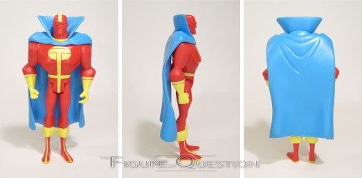 Red Tornado was initially released in the second round of Mattel’s Justice League Unlimited tie-in line in 2004, in a three pack that included the Flash and Green Lantern. He then got a single release in 2005, and then another in 2010. The figure stands about 4 1/2 inches tall and he has 5 points of articulation. Red Tornado is built on the medium size male base body, which was originally Green Lantern. It’s a good match for Tornado’s build on the show, so it’s a sensible choice for a starting point. He got a re-worked set of legs featuring his boot cuffs, as well as a unique head sculpt and an add-on for his cape. The new pieces do a respectable job of capturing his show design, especially the head, which feels especially true to that incarnation of the character. Red Tornado winds up rather similar to Dr. Fate when it comes to the paint work, which is decent in terms of application, but misses the mark a bit in terms of accuracy. He steers closer to Tornado’s classic color scheme, which means that his gloves are yellow and the boots are red, when they should both actually be blue. Moreover, the blue on his cape is far brighter than it should be for proper show accuracy. The 2010 release would correct the issues with the paint, but the 2004 and 2005 releases were both incorrect. Ultimately, it’s really not the end of the world, and the application is at least still pretty nice. The three-pack version (which I have) didn’t get any accessories, but the single versions both got a tornado effect piece.