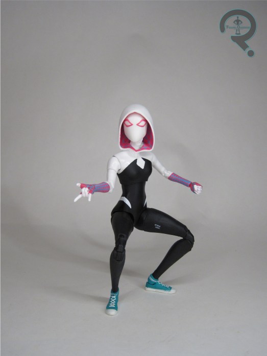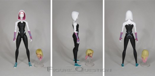 the film. This one, on the other hand, gets an all-new sculpt, which is more properly attuned to her look from the movie. It’s a very basic and straight forward sculpt, but it does what it needs to, and it certainly looks the part. I think I preferred the masked head on the last one, but the actual hood hangs more naturally here, and the build of the body is definitely more accurate this time around. In terms of paint work, this Gwen, much like her predecessor, does suffer from just a bit of fuzziness in some spots, but for the most part it works out pretty well. In particular, the detailing on the “webbed” parts of the costume turned out pretty nicely. Gwen is packed with an alternate unmasked head, a corresponding pulled down hood piece, and two sets of hands. As with others in the assortment, it’s perhaps a touch light, but at least it covers the basics.