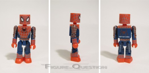 Since the two prior Spider-Man films hadn’t gotten any tie-in coverage for Minimates, SM3 our first stab at the standard Spidey look from the Toby McGuire films.  That said, this was the *second* standard issue to hit the line, following the con-exclusive two-pack version that had hit during the summer before these assortments.  While the differences between the two Black Costume Spider-Men were more notable, these two versions of the standard had their differences as well.  The figure is built on the post-C3 minimate body, so he’s about 2 1/4 inches tall and he has 14 points of articulation.  He’s a vanilla ‘mate, so there’s not extra add-ons for this guy.  It’s as it should be, since he doesn’t need to be bulked up or anything, and sculpting the weblines would certainly be overkill for this style.  He gets an impressive selection of paint work.  It’s not quite as good as the preview pack version, but there’s still a lot going on.  He gets all the appropriate webline detailing, as well as texturing on the blue sections of the costume.  The texturing even goes all the way around, which is pretty cool.  He doesn’t get the weblines for his hands and feet the way the preview version did, but it’s still more than the average Spidey got.  The SM3 figures marked a change in styling for Spidey ‘mates, as this was the first time that the belt of his costume was on the actual waist piece.  It changes the proportions a bit, moving him towards the more modern stylings of the line.  Spidey was without any accessories for this release.