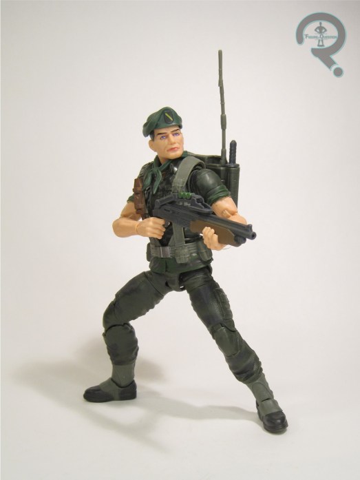 Vincent “Falcon” Falcone, as Falcon has been renamed since 2011 so as to avoid confusion with other “Falcons”, is figure 64 in the Classified Series line-up. He’s part of the latest assortment for the line (though they’ve officially switched to only solid cases of the figures at this point), and he’s a mass-release figure. The figure stands 6 1/4 inches tall and he has 35 points of articulation. Falcon has the same standard layout for articulation that we’ve seen on most of the line, with the only adjustment being the inclusion of pinless construction on his elbows and knees. The articulation works for the most part, and keeping consistent articulation schemes across a whole line of figures is a pretty G.I. Joe thing to do. Falcon is based on his v1 figure, and, as has become the trend for the line in recent waves, that’s a pretty direct, shot for shot update. Like 25th before, the approach here is if the v1 figure did it, so does this one. Apart from one small bit of sci-fi detailing replacing his radio on his shoulder, he’s all v1. Falcon’s sculpt is an all-new one, and one that’s been the source of some contention in the fanbase. There were some complaints earlier in the line that Joes were all winding up a little too pretty, so Hasbro’s evidently trying to course-correct a bit. The end result means that Falcon winds up looking somewhere between John Wayne and Rondo Hatton, which on one had isn’t quite what you’d anticipate for the character, but is on the other hand is consistent with Falcon’s tendency to look funk ugly when it comes to toys (his 25th Anniversary figure being a prime example of this). There’s been a lot of fuss about this head sculpt since the figure was shown off, and while it’s not my favorite, it does at least look a bit better in hand than it did in the