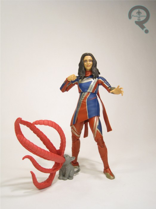 skinny. In general, it’s just a better sculpt, start to finish. The paint work continues the trend. The colors wind up a lot less muddied this time around, just by swapping the blue out for a darker shade. It gives the whole look a lot of pop, and just makes everything feel really sharp. The application is pretty clean for the most part, apart from some slight bleed over on some of the gold. Ms. Marvel is packed with two sets of hands, in open gesture and fist/gripping combo, as well as a Flerken (who doesn’t appear to be Goose, given its coloring), and the torso of Totally Awesome Hulk.