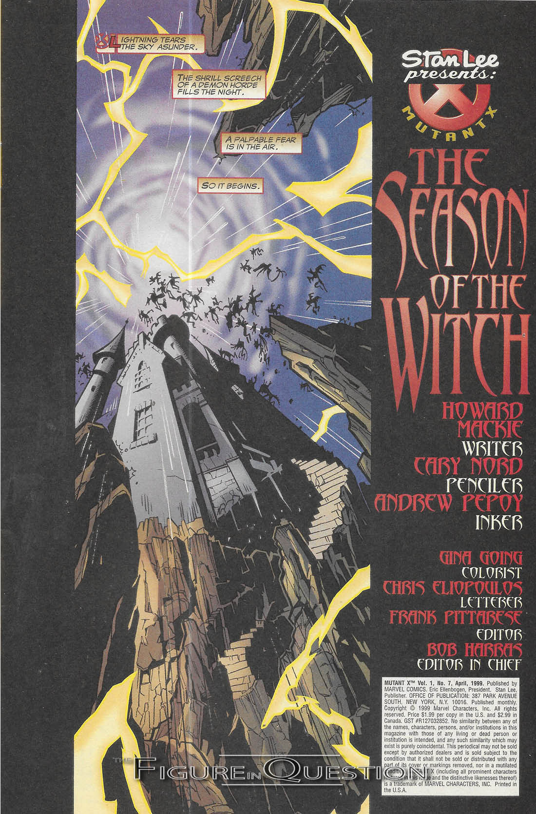 Mutant X #7 is cover dated April of 1999, with Howard Mackie as the writer, Cary Nord as the penciller, and Andrew Pepoy as the inker.