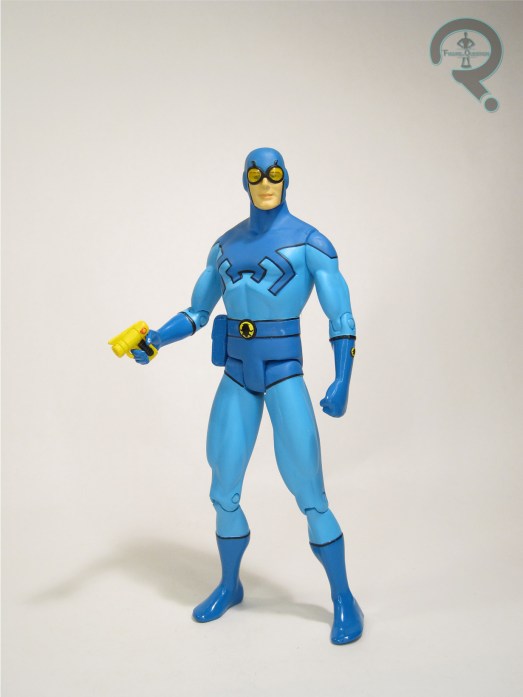 Blue Beetle was released in DC Direct’s Classic Heroes line-up.  He was released in June of 2002, back when they were still just kind of one long-running line with each assortment fitting a different theme.  Classic Heroes was a set specifically based on the characters DC had acquired from other companies, with Beetle and The Question showcasing Charlton Comics, and wave-mates Phantom Lady and Uncle Sam showcasing Quality Comics.  This marked Ted’s second figure, following up on his JLA figure from 1999.  The figure stands about 6 inches tall and he has 11 points of articulation.  Blue Beetle got a unique sculpt for this release.  He’s definitely patterned more on his earliest DC appearances, prior to his “Bwa-ha-ha” era, but not quite going full Charlton in design.  It’s a good sculpt, very clean and concise.  It’s not super posable, but it does the basics, much like the Legion figures from the same era.  Ted’s got a fairly realistic and balanced set of proportions, so he’s not superhuman, which feels right for the character.  His lower legs do seem maybe a touch too short, but it’s pretty minor.  The goggles are a separate piece on the head, allowing you to see his eyes beneath, which is definitely a cool touch.  Beetle’s paint work is very clean and very sharp, which I really dig.  The colors are quite bold, and feel proper for the character.  I love how the black line-work turned out, and his eyes look really good beneath the goggles.  Ted is packed with his BB Gun and grapple line.  The grapple has a suction cup on the end, so you can hang him from windows and such, which is really great fun.  The only downside is that he’s only got one gripping hand, so he hand hold onto the line and his BB gun at the same time.