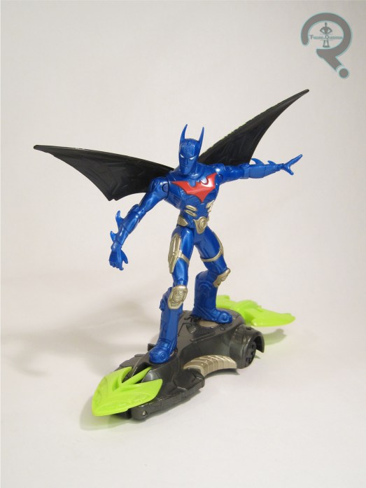 Freestyle Skate Batman was part of the third round of Mission Masters, dubbed Mission Masters 3, and he was a deluxe-sized release. The figure stands about 5 inches tall and he has 7 points of articulation. He was noteworthy for getting a disc and peg set-up on the shoulders, in contrast to the simple cut joint that almost every Hasbro/Kenner DC figure got. Why did he get the extra movement? No clue. It’s cool, though. His sculpt was all-new, and it’s…well, it’s a Batman variant. The head sculpt is very much consistent with Hasbro’s other BB head sculpts, which is to say it’s not exactly an accurate recreation of the animation model, but it’s not terribly far off. The rest of the sculpt is definitely on the goofier side. He’s quite pre-posed, and his design maintains elements from his standard look, but adds a bunch of extra ones, because I guess that’s what you do when you’re skating? His color work is again pretty close to the standard, though he’s a metallic blue, rather than black. He’s accented with some slightly bronzed silver. I particularly dig the tech detailing on the wings. Batman wouldn’t be much of a “Freestyle Skate” guy without some form of skateboard, so he gets just that. It’s big, silly, strange, and it launches a big missile. So, there it is.