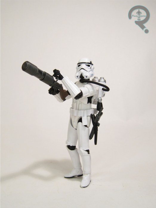 Collection Stormtrooper as its starting point, but got an updated head and torso, and seems to generally be a slightly sharper rendition of the sculpt. He’s got a removable helmet, which matches well with the non-removable equivalent for this body sculpt, and underneath, he’s got a head sporting the likeness of Joe Johnston, who was the guy actually in the Spacetrooper armor on set. The paint work is decent enough; he’s got the basic black and white set-up, with the extra details under the helmet and all. The Spacetrooper is packed with his rebreather pack and hose, which plug into his helmet and back, and are fairly secure. He also gets a standard blaster, as well as a larger rifle, complete with moving handle.