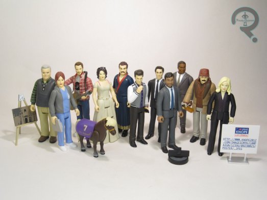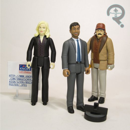 Andy Dwyer, Ann Perkins, Jerry Gergich, L’il Sebastian, Ron & Tammy 2, Perd Hapley, Jean-Ralphio, Bobby Newport, Sick Ron, Tom Haverford, and Campaign Leslie Knope make up the last three series of Super 7’s Parks and Recreation ReAction Figures. Andy, Ann, Jerry, and L’il Sebastian are the standard Series 2 figures, with the Ron & Tammy 2 two-pack serving as a companion piece. Perd, Jean-Ralphio, and Bobby are Series 3, and Sick Ron, Tom, and Campaign Leslie are Series 4.