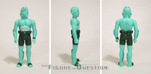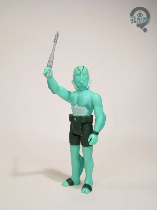 Abe Sapien was released as part of the single-carded first assortment of Super 7’s Hellboy ReAction Figures line, alongside HB, Liz, and Lobster Johnson. The figures are all comic-based, filtered, of course, through the usual ReAction lens. The figure stands 3 3/4 inches tall and he has 5 points of articulation. His sculpt was unique to him, and it does a respectable job of taking Mignola’s fish-man design and making it look like a Kenner figure from the ’70s. Proportionally, his head seems maybe a bit big, but I think that may also be slightly linked to the way the gills work. Beyond that, it’s a neat sculpt. They’ve gone more for the “underwater adventure” look for Abe, so he’s got his shorts and belt, but that’s it. The feet are an interesting quirk; as far as I know, Abe’s always been depicted with actual toes, albeit frequently webbed ones, but this figure gives him sort of hooves, kind of like what Hellboy classically has. I’d chalk it up to shared parts, but the two have very different details elsewhere on their legs, so it can’t really be that. Just one of those things, maybe to sell the frequent Kenner inaccuracies? The color work on Abe is pretty fun; the teal sort of color is brighter than Abe is usually depicted, but it fits the vibe of the line very well, so I very much dig it. Application’s all pretty clean, and there’s a surprising amount of accenting. Abe is packed with a harpoon, which is great for all those harpooning needs.