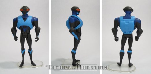 With the Aquaman-centered Mercy Reef pilot floating around, JLU‘s final season was unable to use any Aqua-related characters, because of Warner Brothers’ rather reductive embargo set-up. As such, the character intended to be Black Manta became “Devil Ray”, who is…well, he’s Black Manta with a different name. Even his design works perfectly fine as an update to Manta. Not being Manta, though, the writers didn’t need to get approval on what they did with him, so he’s a notable casualty within the show, which does up the ante a bit. Devil Ray uses the medium male body again, with a new head and harness. The new parts are quite nice, with the head in particular being a strong match for his show design. He’s a little tricky to keep standing, but by this point in the line, all of the molds, especially the medium male, were degrading a bit, so weak ankles weren’t uncommon. He relies on paint for a lot of his details, and it generally works, but the guns on his wrists do look a little silly just being flat painted on details.