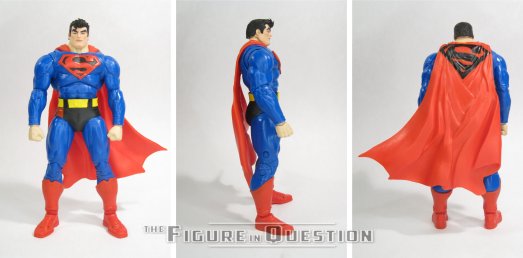 Superman is part of the second assortment of “Digital” figures from McFarlane’s DC Multiverse line, released under the DC Direct banner, alongside Atom and “Longbow Hunters” Green Arrow. As noted in the intro, he’s patterned on “Our Worlds At War,” or more specifically Superman’s altered look from the year following the event’s conclusion. The figure stands 7 1/4 inches tall and he has 35 points of articulation. As with a lot of the McFarlane figures, the articulation count may be high, but actual range is rather restricted. The elbows don’t get a full 90 degrees, and the neck and mid-torso are also very stiff, so he’s mostly gonna be doing standing around poses. Superman is largely making use of the DKR Superman mold, which is one that they keep returning to for some reason. It’s based on Miller’s very bulked-up Superman, so it’s a very specific sort of mold, that’s not as all-purpose as they seem to think it is. All that said, the two primary artists for Superman’s post-OWAW look, Ed McGuinness and Mike Wieringo, both depicted him as rather bulked up, so it’s not terribly far off. Chalk it up to all that extra energy he picked up when he flew through the sun. He gets a new head sculpt, which appears to be sort of an averaging of McGuinness and Wieringo’s styles. They’re not completely incompatible, so it’s alright. It’s definitely got McGuinness hair (or at least the front of it) and a Wieringo chin, that’s for sure. He also