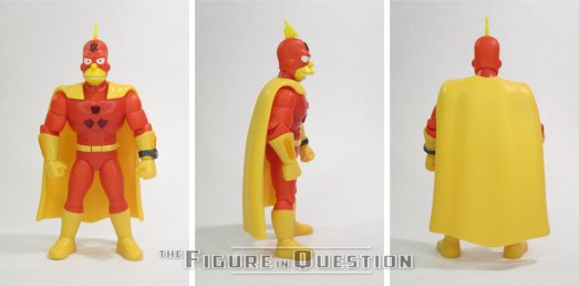 Radioactive Man is one of the three Deluxe figures kicking off that portion of JAKKS’ The Simpsons line, alongside variants of Mr. Burns and Homer. The figure stands just over 5 inches tall and he has 21 points of articulation. In terms of scaling, they’re not too terribly far off from Playmates’ stuff, but they’re a little different stylistically, so they don’t quite vibe. The articulation lands somewhere between Playmates and Super 7. He’s got a better spread then the very barebones Playmates figures, of course, but not the same range as the Super 7 figures. There are some very definitely limitations when posing this guy, with the