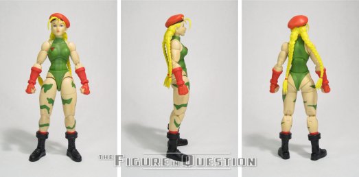 Cammy is part of Round 3 of Jada’s Ultra Street Fighter II line, alongside Guile and Dee-Jay. All three hit together at the same time at the very end of last year. All three from a set hitting at the same time is actually a first for the line, which has thus far been staggering pairs and singles. The figure stands about 6 inches tall and has 32 points of articulation. The articulation here is a little more straightforward than the Cammy Figuart I looked at a few years ago, but it results in some generally cleaner posing and range, especially on the legs. I was also quite happy that her neck joint allowed for upward movement, so she’s not perpetually looking down the way that figure was. Additionally, the assembly of the articulation is such that she winds up looking a fair bit less segmented when posed, which is always a plus. And, she’s surprisingly stable on her feet; the pose in the photo up top took some careful balancing, but required no other support. Cammy is sporting an all-new sculpt, specifically based on her SF2 design, which is my personal favorite.