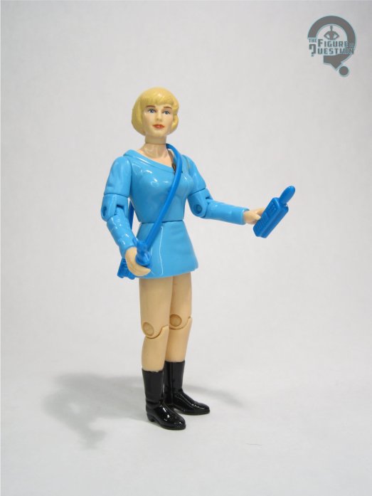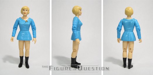 Nurse Chapel is part of the fifth “mixed” assortment of their Star Trek line. She was released at the same time as Rand, thereby wrapping up the auxiliary central cast to go with the main crew boxed set. The figure stands just under 4 1/2 inches tall and she has 12 points of articulation. The articulation’s all pretty standard for the line, with the caveat that her hip joints are restricted by the choice to go hard plastic on the skirt portion of her uniform. Her sculpt is actually pretty good for the line. The