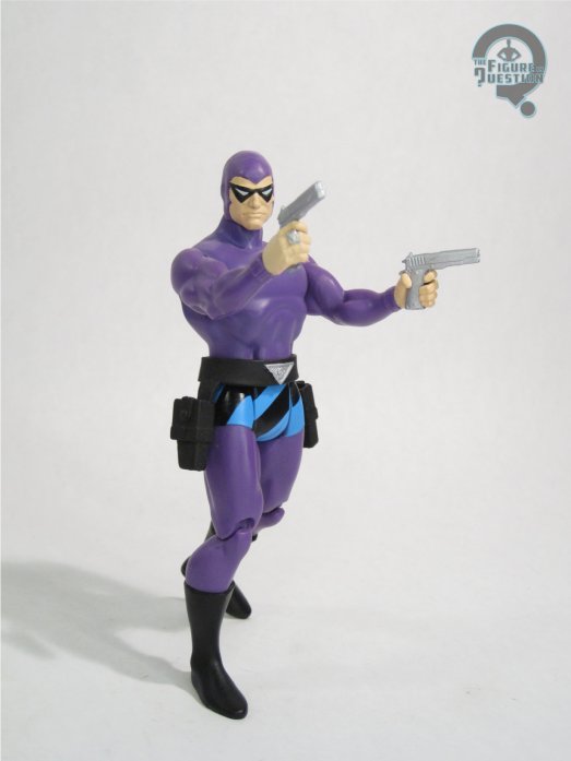 The Phantom is part of the first series of Power Stars. The whole set was King Features based, but Phantom is the only non-Flash Gordon character from the bunch, so he sort of stands out. He’s seen here in his classic purple costume, and even still has those striped shorts that the first NECA figure lacked! The figure stands 4 1/2 inches tall and he has 9 points of articulation. His movement is the same as Flash and Ming, which is to say it’s pretty good. His sculpt is again very similar to the others stylistically, but has no actual straight overlap of pieces, with each part getting at least enough small detailing to keep him unique. I very much like that. For a character such as the Phantom, who has such a simple design, it’s easy to sort of phone some things in, so things like the patterned sleeve cuffs or the raised ridges on the shorts are really cool to see. His paint work is pretty basic, but does what it needs to, without any real issues. I certainly like the actual shades picked, which is another leg up on the NECA figure. Phantom is packed with a pair of pistols, which he can dual wield, or store in the working holsters on his belt.
