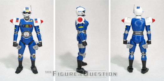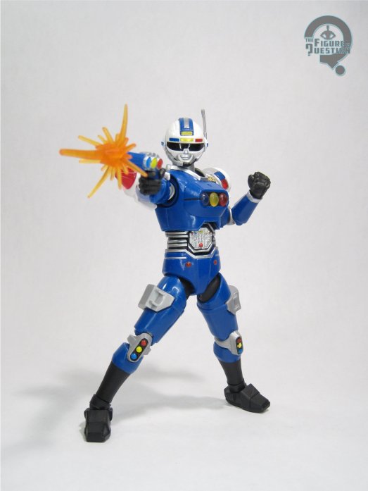 Blue Senturion was released as a deluxe-priced figure in Hasbro’s Power Rangers: Lightning Collection line. Unlike Phantom Ranger, Senturion was actually billed under the Turbo banner, making him the first in the line (though there was only one more after this before the line wrapped).  The figure stands 6 1/4 inches tall and he has 36 points of articulation.  His movement is similar to the rest of the line, but surprisingly unimpeded by the sculpt, which is super cool.  He’s sporting an all-new sculpt, courtesy of sculptor Dennis Chan.  It’s a very strong recreation of his show design, wherever you may land on that.  I mean, it’s certainly goofy.  I don’t think it’s really as strong a look as Phantom Ranger.  But, there’s no denying that the sculpt does it justice, and it’s certainly clean and sharp.  There’s a lot of layers to the assembly, which gives him some nice depth.  It’s this complexity of design and sculpting that contributes to the “deluxe” price point of the figure, despite his generally fairly average sizing for the line.  The color work on this guy is also pretty solid.  I really dig the translucent coloring on his “lights”, and the general application of the paint’s all pretty clean.  Blue Senturion is packed with two pairs of hands (in fists and gripping), his Senturion Synergizer in blaster, baton, and collapsed configurations, swappable leg holsters for open and closed on both sides, a blast effect, and his whistle.  That’s quite a lot of stuff, and pretty much covers every base except perhaps his bike, but that’s a bigger item I really wouldn’t expect.