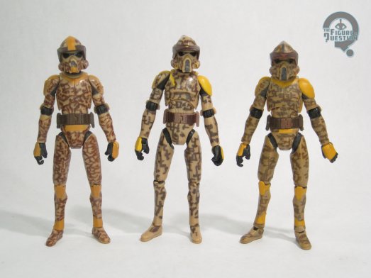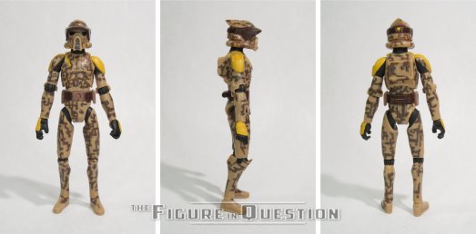 So, remember just last week when I was talking about the Biker Scout armor and its various derivatives? Cool, let’s loop back to that. Amongst the prequel era Biker Scout derivatives is the ARF Trooper, a modified version of the standard Clone armor that surfaced in The Clone Wars. I’m a huge fan of that particular design, and I’ve made it one of my goals to track down every version of it released in Hasbro’s tie-in line. During the episode “Landing At Point Rain,” the ARF armor gets a re-deco in Geonosis-inspired camo, which got toy coverage in the form of recurring clones Boil and Waxer, but also a not-named clone, you know, for some variety.