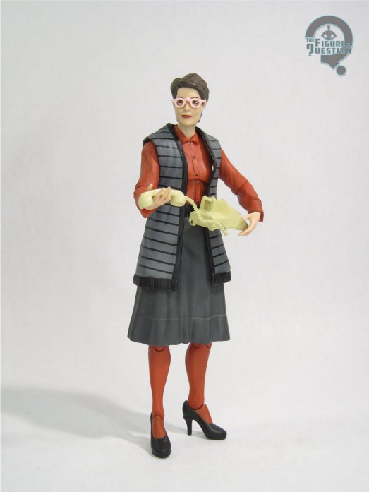 Janine was released in Series 3 of Diamond’s Ghostbusters line. She’s based on her first movie look, which is a little more reserved and “real world” than her look from II, making it the less likely of the two for toys, typically. The figure is about 6 3/4 inches tall and she has 26 points of articulation. The Diamond figures were 7-inch scale, so they don’t really go with the Mattel or Hasbro offerings, but they do go with other DST offerings, I guess. Or, maybe Janine is just, like, really tall. The articulation on this figure is rather on the restricted side. Obviously, areas such as the legs make a degree of sense, since she’s got the skirt and all. What’s more surprising is the elbows, which don’t even get to a full 90 degree bend, seemingly for no reason at all. It makes it difficult to do much with her beyond just standing her there. Her sculpt proper is decent. It’s definitely right in line with the rest of the line’s quality, and DST’s 7-inch figures in general. The likeness on the head is decent, if perhaps somewhat marred by the very thick