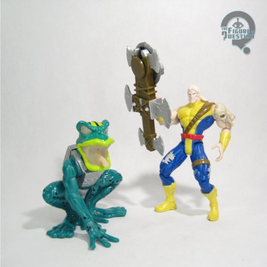 Joseph and Amphibius are the fifth and final entry in the 1997 “Savage Land” assortment of Toy Biz’s X-Men line. As noted in the intro, Joseph was rather a current addition to the team at the time, making him an interesting counterpart to the rest of the line-up, which consisted of a classic look for Angel, more or less evergreen designs for Ka-Zar and Storm, and a very modernized (at the time) Wolverine. Joseph actually wound up in the Savage Land the same year this figure was released, but was not with any of the other characters featured (he actually spent most of his time with Maggott, who was *supposed* to get a figure, but it was cancelled…)