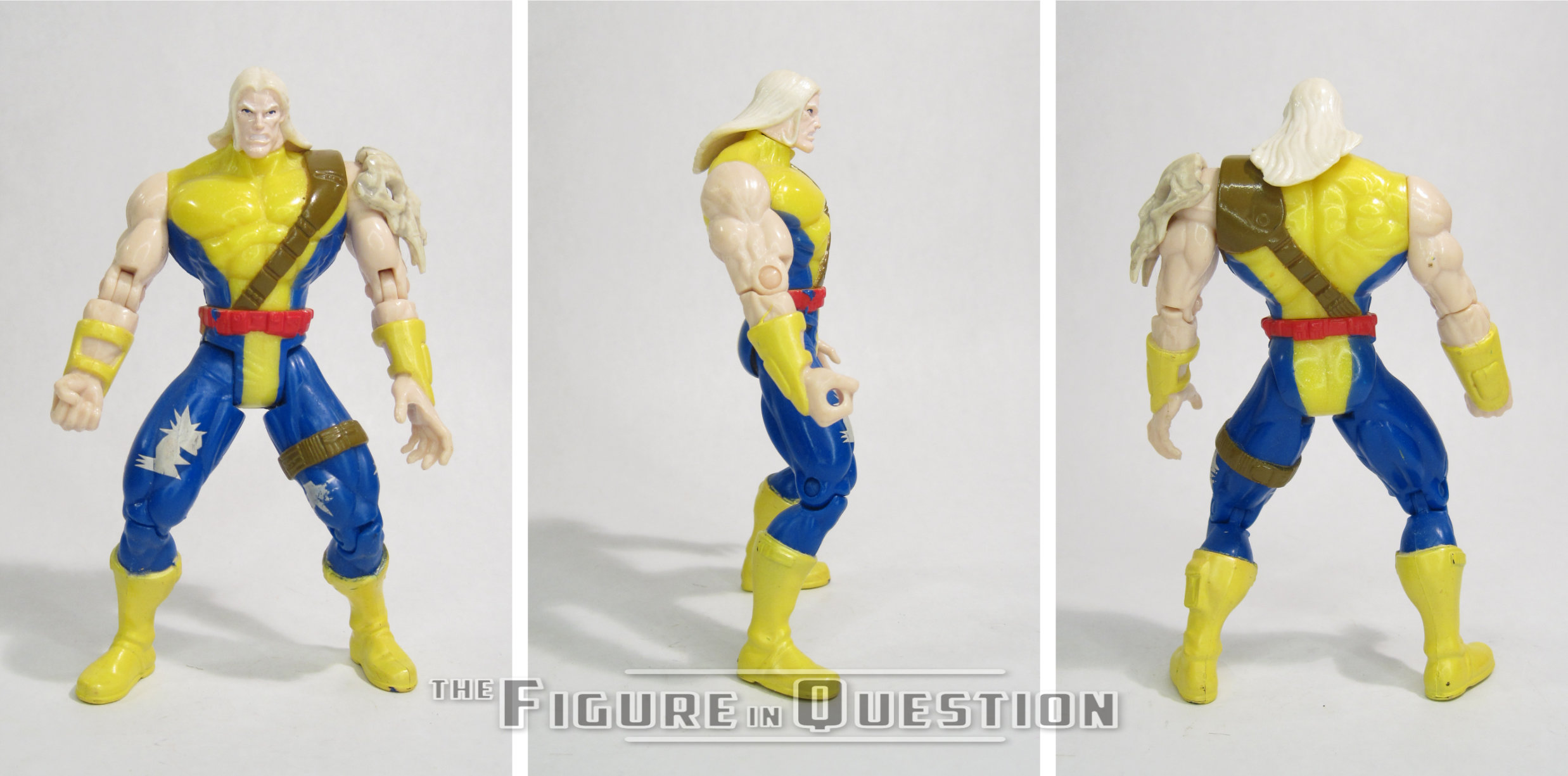 Joseph and Amphibius are the fifth and final entry in the 1997 “Savage Land” assortment of Toy Biz’s X-Men line. As noted in the intro, Joseph was rather a current addition to the team at the time, making him an interesting counterpart to the rest of the line-up, which consisted of a classic look for Angel, more or less evergreen designs for Ka-Zar and Storm, and a very modernized (at the time) Wolverine. Joseph actually wound up in the Savage Land the same year this figure was released, but was not with any of the other characters featured (he actually spent most of his time with Maggott, who was *supposed* to get a figure, but it was cancelled…)