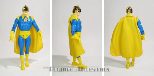 Dr. Fate was released in the Mystics, Mages, & Magicians series from DC Direct, which arrived August 16, 2000. Fate was joined by fellow JSA member Spectre, as well as Zatanna, and John Constantine. This marked Fate’s second figure, following up on his vintage Super Powers release. The figure stands just over 6 inches tall and he has 9 points of articulation. None of the early DCD figures were tremendously well articulated, but Fate’s definitely got some oddities to him. The arms are fine enough, but the legs are curiously missing knees, while still having ankles. It’s good for finding the sweet spot on balancing him, but how close the feet are together does look a little silly. His sculpt is on the basic side, generally keeping with the early years of DCD. It’s clean, and bold, and replicates the design of the character pretty well. He’s got a removable helmet, which reveals a somewhat pin-headed Kent Nelson beneath it, but it’s still a neat idea, at least in theory. The main helmet is also really nice, and a good replica of the helmet of Nabu from the comics. Did I say “main helmet”? Yes I did! There’s also an alternate helmet, showcasing Fate’s more super-hero-y helmet from the ’60s, which shows off the bottom half of his face. This is the only time its ever been done in toy form, so it’s certainly nifty! His color work is generally basic, with flat yellow and blue for the most part. The helmets and the amulet are all vac metalized, though, which….well, it’s got mixed results, I guess. It’s certainly a cool idea, but it clashes quite a bit with the flat yellow. Still, it was nice to see them try something different.