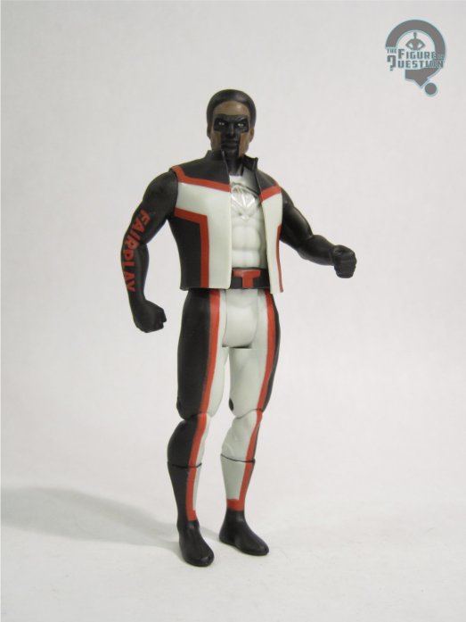 Mr. Terrific (Movie) is part of Series 12 of McFarlane’s Super Powers line, which is a whole assortment based on the Superman movie hitting at the end of the week. Terrific looks poised to be a notable part of the movie, so he’s a very sensible choice. He’s also one of two movie figures to not have a comics-equivalent already in the line, but his costume design is close enough that you could certainly use him as a comics stand-in, were you so inclined. The figure stands about 4 1/2 inches tall and he has 7 points of articulation. Terrific’s using the smaller Flash-based body, which is a decent enough match for him, at least in terms of just basic build. It’s not a bad base body, so I can’t really knock it. He gets a new head, jacket, and belt. The head, much like the Superman head, has a resemblance to Edi Gathegi, but not really a proper likeness. It’s a bit on the large side again, and I do wish that there was any sort of texturing on the hair, but it’s generally an okay sculpt. The jacket and belt are more on the basic side, but both sit well on the body. In terms of coloring, the figure’s got a fair bit going on. It’s a bit of a mixed bag in terms of how well things work. I do like the logos and writing on the torso, jacket, and arms. An unfortunate downside of this figure’s assembly, namely the visible pins at the knees in contrast to the way Kenner did it, means he winds up with rather obvious black pegs on the inner knees, which isn’t great. I was initially going to complain about just painting over the boots as if they weren’t there, but that’s accurate to the movie, so good for them on that one, I suppose. Accessories aren’t standard with these guys, but a T-Ball would have been cool. As it stands, if you want anything to go with him, you’ll have to buy the T-Ship for him.