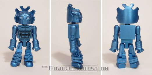 Last up is the robotic Dreadnought! A dreadnought was included with both versions of the Mandarin, which is great for those who want to do the whole army building thing. Like the other two figures, the Dreadnought was built on the basic Minimate body. He stands about 2 ½ “ tall and features 14 points of articulation. In place of the basic parts, the Dreadnought features a sculpted head and hands. The head is an all new piece, but the hands are a reuse from Viggo the Carpatian. The Dreadnought also features a set of sculpted boot tops which I believe are a reuse from the Dark Avengers Ares. The paint is relatively basic, but it is well done. Plus the metallic blue is just so awesome!
