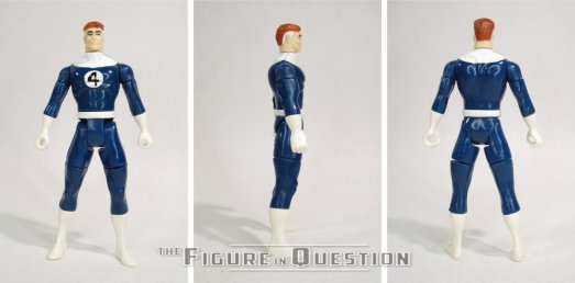 Mr. Fantastic was released in Series 3 of Toy Biz’s Marvel Super Heroes line. This was Reed’s second figure, following his Mego from the ‘70s, and the first of only two figures under Toy Biz’s 5-inch run. The figure stands just under 5 inches tall and he has 5 points of articulation. Like both Ben and Johnny, he’s got a rather reduced articulation scheme for the line, especially notable in light of Sue getting the full load out. In Reed’s case, however, this is actually linked to his “action feature.” Dubbed “5-way” stretch, Reed can extend at the neck, waist, biceps, forearms, thighs, and shins to replicate his stretching. It’s a sort of off look, of course, and also results in the figure being extremely fragile, but it’s an intriguing idea. The sculpt is in line with the rest of the team, so he’s a bit more basic and rudimentary than later figures. The nature of the stretching feature also makes him a rather stiff looking figure. That being said, I think it’s a more Reed Richards-y sculpt than the later cartoon one, especially in terms of build. Color work is very dependent on molded colors on this guy, and there’s a tendency in certain samples for the blues to be rather mis-matched. On mine, they’ve held up okay, though. The actual paint work proper’s alright; Toy Biz did always know how to do a solid job with a “4” logo. Reed is packed with a blaster thing of some sort. I don’t recognize it as a story specific element, nor do I know why Reed would need a gun (unless it were wooden and for the intended purpose of breaking Magneto’s mind), but there it is.