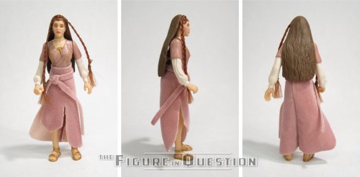 Leia is once again the main selling point of the set, which makes sense, what with the collection being named after her and all.  She’s seen here in her Ewok dress from Jedi, which is interesting for two notes.  Firstly, the packaging shows an image of Leia in her Endor assault gear, from her first (and most prominent) scene with Wicket, rather than the dress.  Secondly, the dress got a standard line release shortly after this one, making it a bit of a crowded market for the look.  I think it might have been cool to do the Endor gear, since it would have been neat to get the cloth poncho, like the vintage line, and it might have been a more fun design.  But, I’m also just kind of partial to that look.  This one does fit the vibe of the line and its more girl-oriented angles a bit better.  The figure is about 3 1/2 inches tall and she has 6 points of articulation.  She does the same mixed media approach as the other Leis from this line.  It works well enough.  The cloth used for the dress is heavy, and hangs well, and the actual braids in the hair are admittedly kind of neat.  Her coloring is a bit of a departure; rather than the brown shades of the actual dress in the movie, she’s got more of a pink hue, again seemingly to make her fit the general aesthetic they were going for a bit more.  It honestly works in her favor, because it’s s slightly more endearing color scheme.
