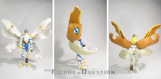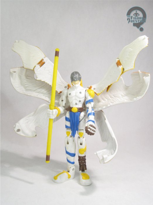 Digivolving Patamon to Angemon (a name that my spellcheck *really* hates) was one of the four initial “Digivolving” figures from Bandai’s Digimon: Digital Monsters tie-in line, released domestically in 2000, during the back-end of the show’s first season run. The figure was packaged and sold as Patamon, with the Angemon transformation being more of an advertised feature. That being said, for me, he’s always been Angemon first and foremost, so I’ll be reviewing him as such. In Angemon form, the figure stands just shy of 6 inches tall and he has 18 functioning points of articulation (you could also count the joints on his wings, but they don’t actually move much once he’s fully transformed). The articulation of the core figure is honestly one of the better selling points of this release, since the standard Angemon from the main assortment was a lot more restricted. This one’s still not *super* posable, since the joints are in a lot of ways limited in exactly what they can do, but he’s at the very least got double joints on his elbows and knees, and there’s a hinge/swivel combo in the ankles. The sculpt is very stylized, and the articulation is a bit rudimentary in how it’s worked into everything, but he generally does look the part of Angemon as he was seen in the show…on the core body, at least. The sculpting is pretty sharp, and there’s a nice variety of textures on display throughout. The accuracy sort of takes a bit of a dive when you get