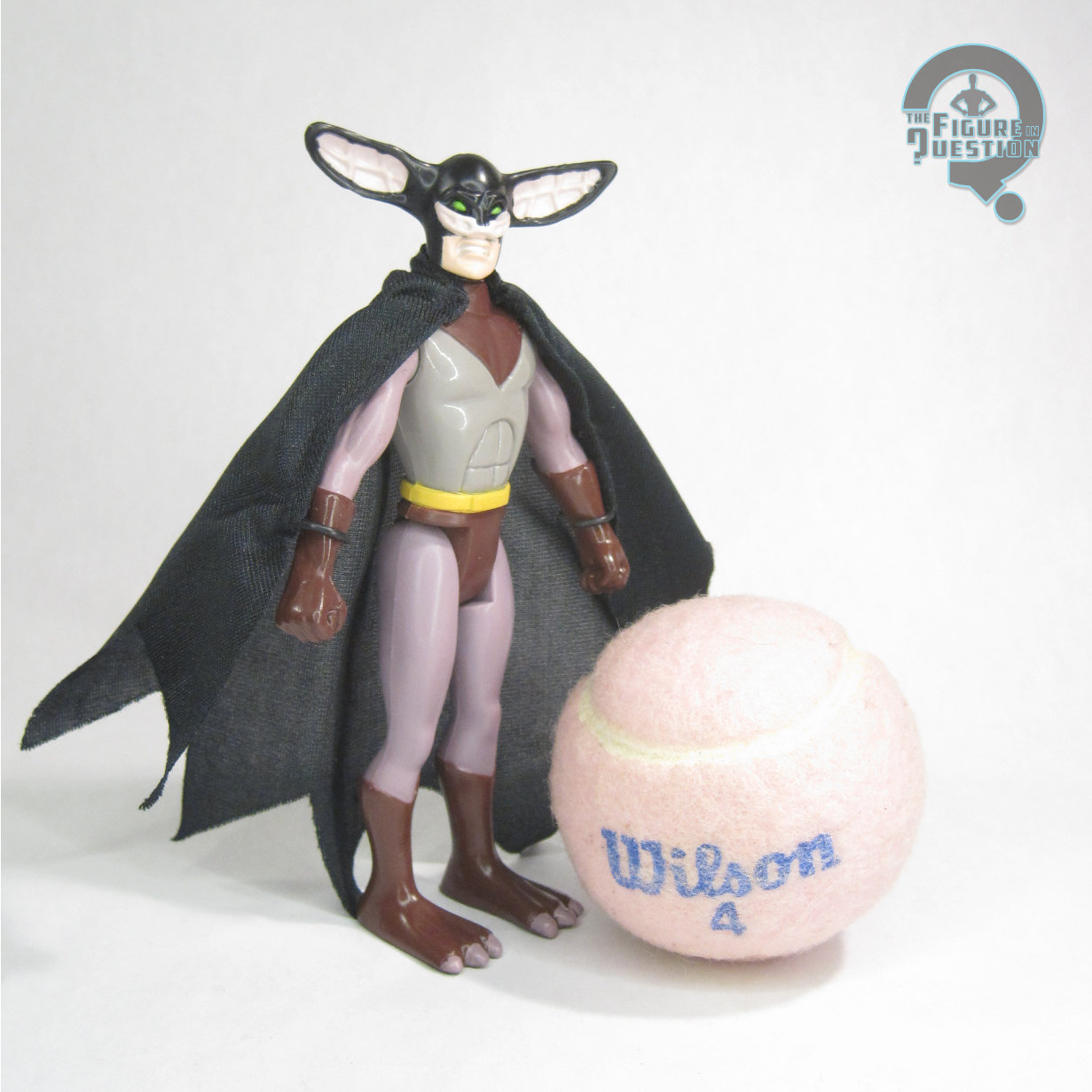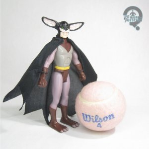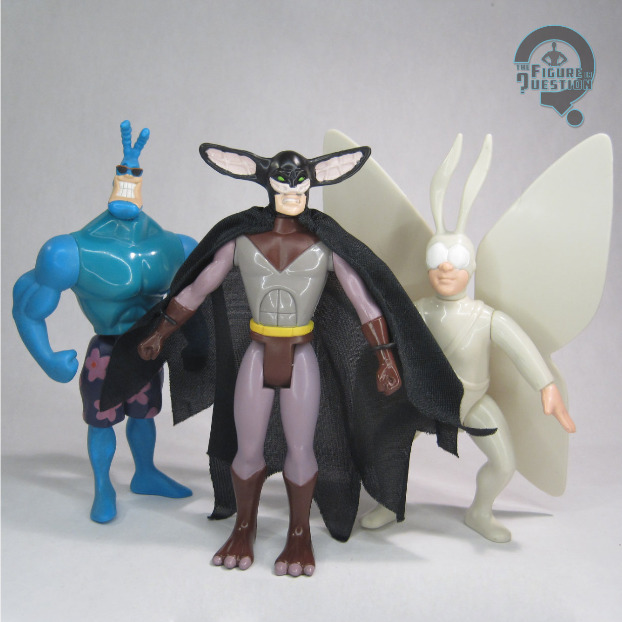 Okay, so the Tick’s catchphrase is “Spooooooooooon!” and Arthur’s is “Not in the Face! Not in the Face!” but what is Die Fledermaus’s?  Presumably something about leaving town for a week when danger rears its head.  One of the things that Ben Endlund talked about in his discussions of the production of the Tick cartoon was the need to introduce a more colorful cast of supporting players.  A lot of the effort went into creating super villains (who are largely not a thing in the early days of the comics), but there’s a notable cast of recurring heroes as well.  Die Fledermous, who’s name is the German word for “bat,” is a wholly original character with no similarities to any other masked super heroes owned by any other comic companies, in case you were wondering.  He got one single figure during the show’s run, which I’m taking a look at today!