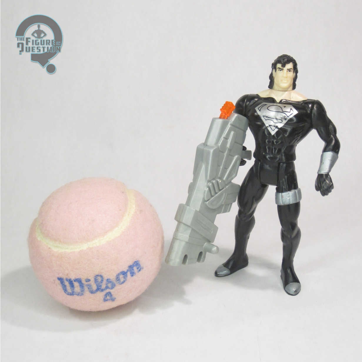 Kenner’s tendency to go for pre-posing, though it’s mostly limited to his arms. His paint work is basic, mostly just black and silver, which is accurate to the design as seen in the comics. It’s somewhat prone to wear, as you can somewhat see from my copy, but it’s generally still pretty good. If you’re wondering why he was called “Laser Superman,” the accessories can help you out on that front. He includes a big, honking, missile launcher, and two missiles, done in a translucent red to look like “lasers.” Superman was without his powers for most of his time in this suit, so he carried large guns from time to time. While this isn’t *quite* what they looked like, it’s close enough to sell it.