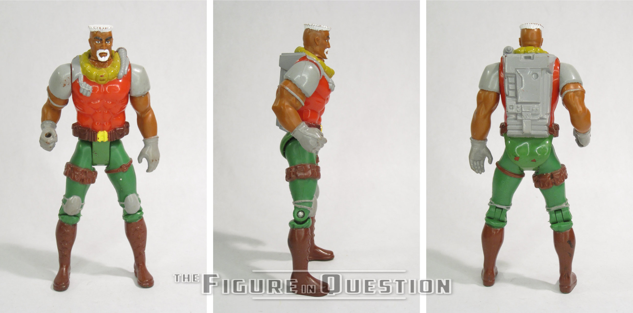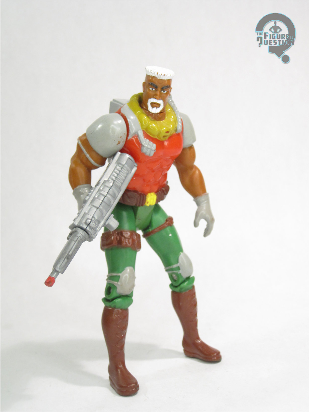I knew a little bit about GW Bridge as a kid, because I seem to recall him appearing as a SHIELD agent in something I read, and also the re-used head for that Rhodey figure. I didn’t have a figure of him, though, because I can’t say he made much of a lasting impression. He was pulled from the same bag of junk figures as Kane, and likewise given to me by Jason from All Time. He didn’t have the gun, but that got re-used a few times, so I thankfully had a spare laying around. Kane had some novelty, but GW rather lacks even that. He’s just sort of unimpressive, and it’s kind of a shame he never got a better figure.