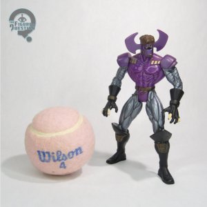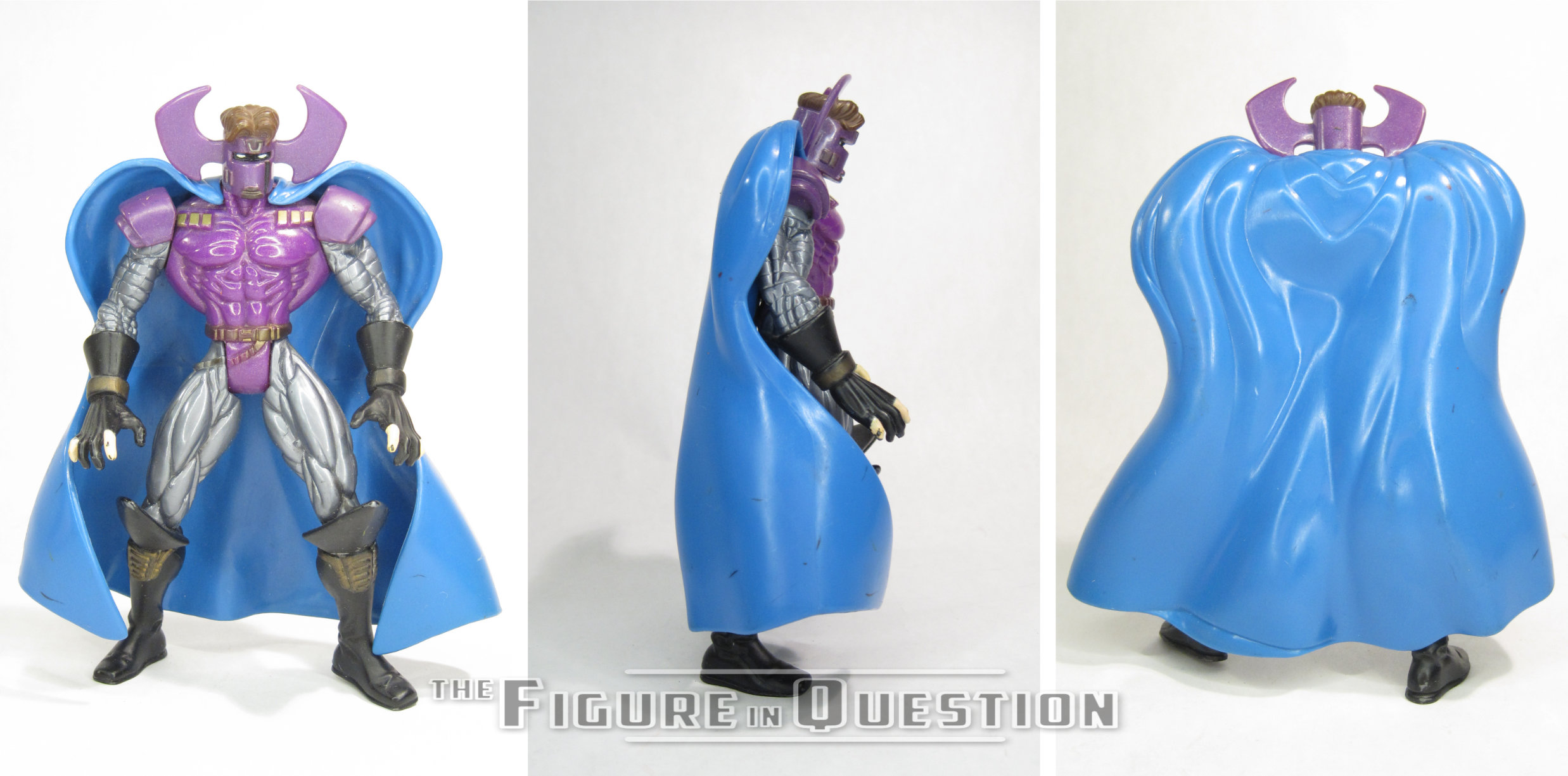 Dr. Polaris (as it’s written on the name part of the box, even though it’s spelled out in his bio on the back) was one half of a two-pack from Hasbro’s DC Super Heroes line. The other half was a Kyle Rayner variant, which would have been in the assortment. It’s a pretty solid pairing, since Polaris is a GL villain, and had just been re-established with Kyle in the comics. The figure stands almost 6 inches tall and he has 5 points of articulation. He was quite sizable, which was kind of odd, since he wasn’t usually that large in the comics. The update to his powers had made things a little bit nebulous, though, and they liked to have a larger villain figure, so I guess it wasn’t the worst thing. The sculpt was all-new to this guy, based on Polaris’s updated design from the ‘90s. I’m a sucker for this look, as tied to that decade as it may be. It’s goofy, but when is Polaris *not* goofy? His sculpt is slightly pre-posed, but certainly on the more minor side for Total Justice. Mostly, it’s just sort of an idle stance, and I think it works. His cape is quite dynamic in its flow, and that’s also quite nice; gotta love those arching shoulders. Doctor Polaris’s color work is a good match for his comics look at the time. He’s got a lot of metallic finish, which gives him an armored appearance that works well for the character.