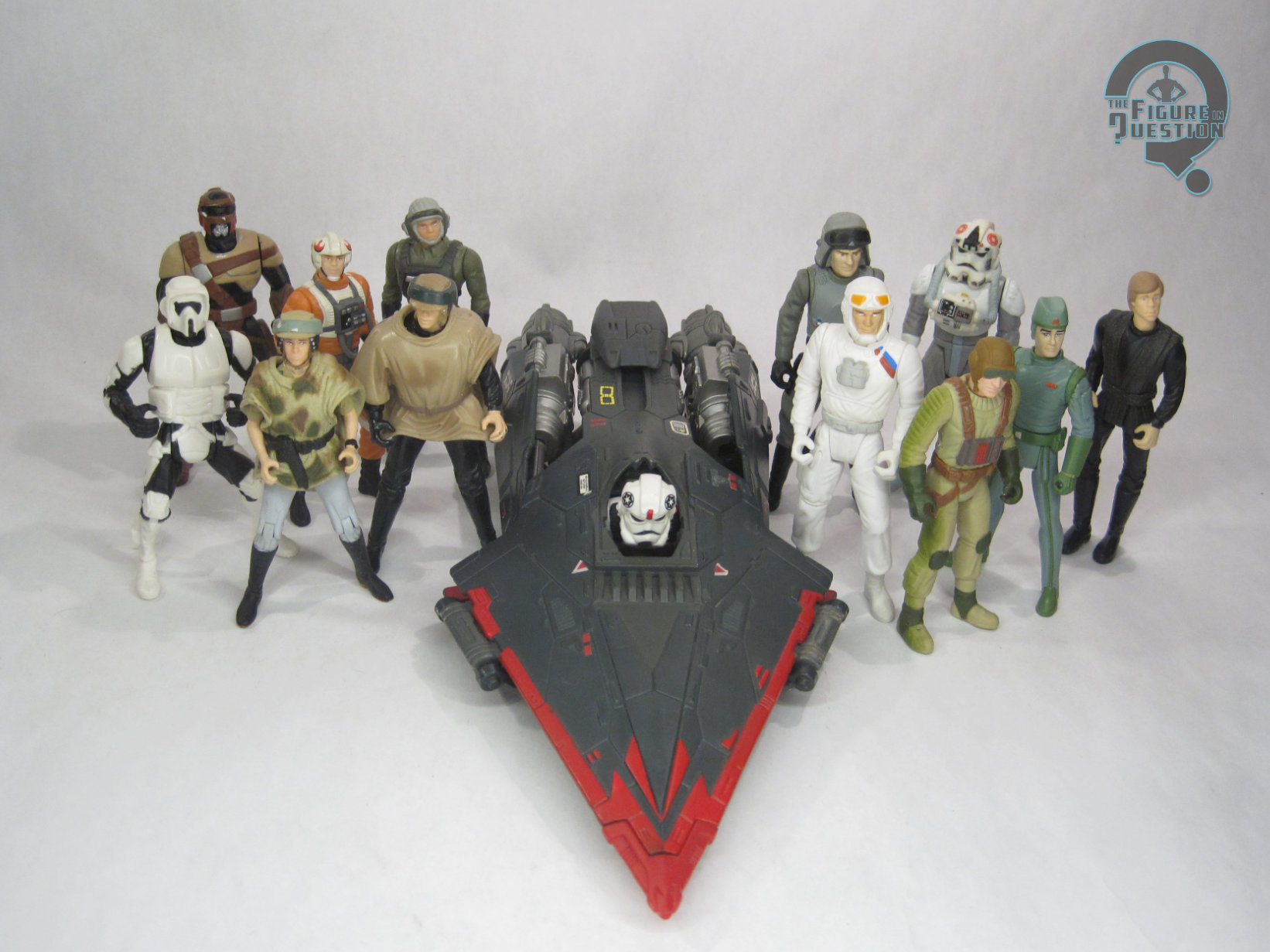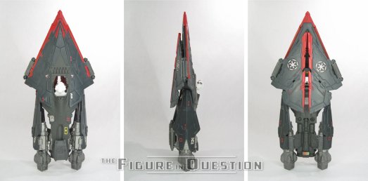 The Cruisemissile Trooper was released under the Power of the Force II banner in 1997, officially as part of the vehicles line-up, though exactly how he’s classified can be a bit touchy. It’s a vehicle, for sure, but there’s also a figure worked into it, and he’s not actually removable. Also, the name very much suggests that the Trooper himself is the main focus, with the actual ship not getting its own name proper. Whatever its distinctions, the whole contraption measures just over 10 inches long, has 4 points of articulation (where hinged flaps can fold out) and a sliding plate to reveal the Trooper’s head. The actual Trooper is scaled to match the 3 3/4 inch figures of the main line (albeit only being an upper half; there aren’t actually any legs in there), and has a proper neck joint, as well as joints on the shoulders that move, but are too loose to hold an actual pose. The figure’s sculpt is clearly patterned on the basic TIE Pilot sculpt, though he’s been modified to work better within the context of the Cruisemissile set-up. Said set-up is a big, flat, pointy, arrowhead shaped thing that wraps all around the figure. It looks a bit like