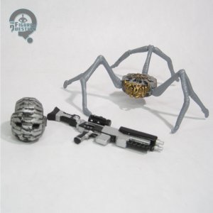 That’s really the best word for the whole thing. His paint work is fine. It’s inoffensive, which is a high mark compared to the sculpt. It manages to not break anything worse…mostly. Not sure what’s going on with those bloodshot eyes, though. They don’t help the overall look. Don was packed with his helmet and blaster from the derelict sequence, as well as one of the larger “spider” creatures that they battle. The helmet is comedically large, but it does at least do the cool flipping down over his face bit, which gains extra significance on the figure, because now you don’t have to see his face. Honestly, I love that for him. The gun is fine, but he struggles to hold it properly. And the spider is a spider. So, they didn’t mess that up.