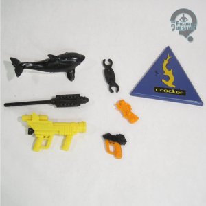 season, but which was most frequently worn by Crocker, making it a solid choice for his design. The head sports a pretty respectable likeness of Royce D. Applegate, and gets a decent amount of detailing especially on the facial hair. Crocker’s color work is pretty well handled. It’s cleanly applied, with sharp detailing on the eyes, as well as all of the insignias and markings on the uniform. Crocker was packed with a Stun Gun, PAL, Away Team Launcher with a Tranquilizer Harpoon, Handcuffs, a small rubber killer whale, and a display stand. The main launcher is the same one included with Bridger, but with a new missile. It’s just as gimmicky here, but it’s still fun, so I can’t complain.