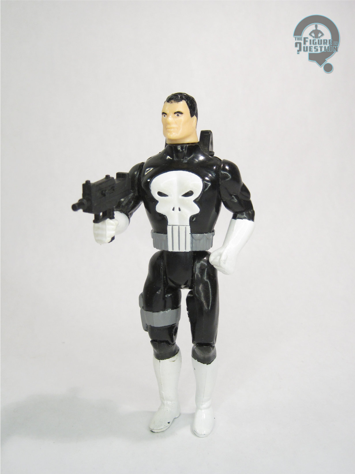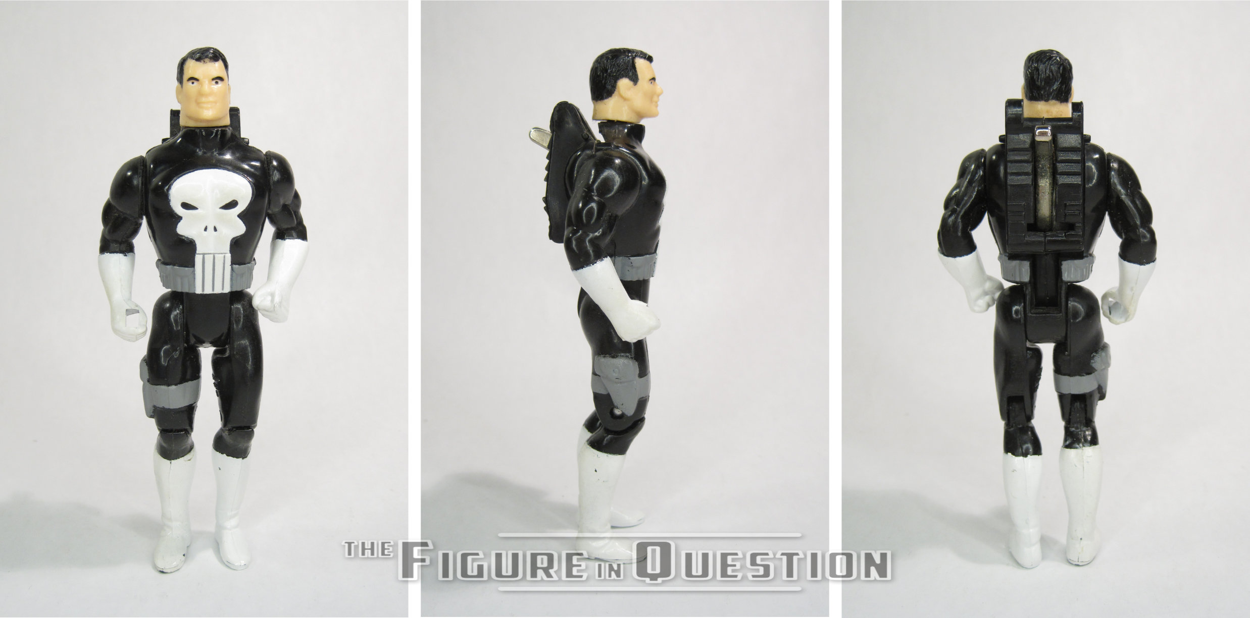 Punisher was released in the first series of Toy Biz’s Marvel Super Heroes line, and also saw a re-release in Series 4 of the line, which was predominantly a re-release assortment. He’s sporting his classic design, which was still his main look at this point, as we hadn’t yet made it to the War Journal era. The figure is just shy of 5 inches tall and has 7 points of articulation. His sculpt would serve as the basis for the three other Punishers in this same line, as well as the talking one. Like the other Series 1 figures from this line, he shows a lot of similar stylings to their DC Superheroes line, and by extension has a bit of an off-brand Super Powers feel. Frank in particular feels quite soft around the edges for this particular character. Not exactly the intimidating presence you might expect fro a guy that regularly mows down criminals. His actual details are also rather soft, and sort of only partly formed. Details like ears and jawline are sort of mushy. I do appreciate that they at least put some folding and creasing around his ankles to properly show off his boots; it’s not the sort of detail you’d expect, but it’s cool. Because Toy Biz was very much a fan of stealing the notes from other successful toylines, they took a page out of the