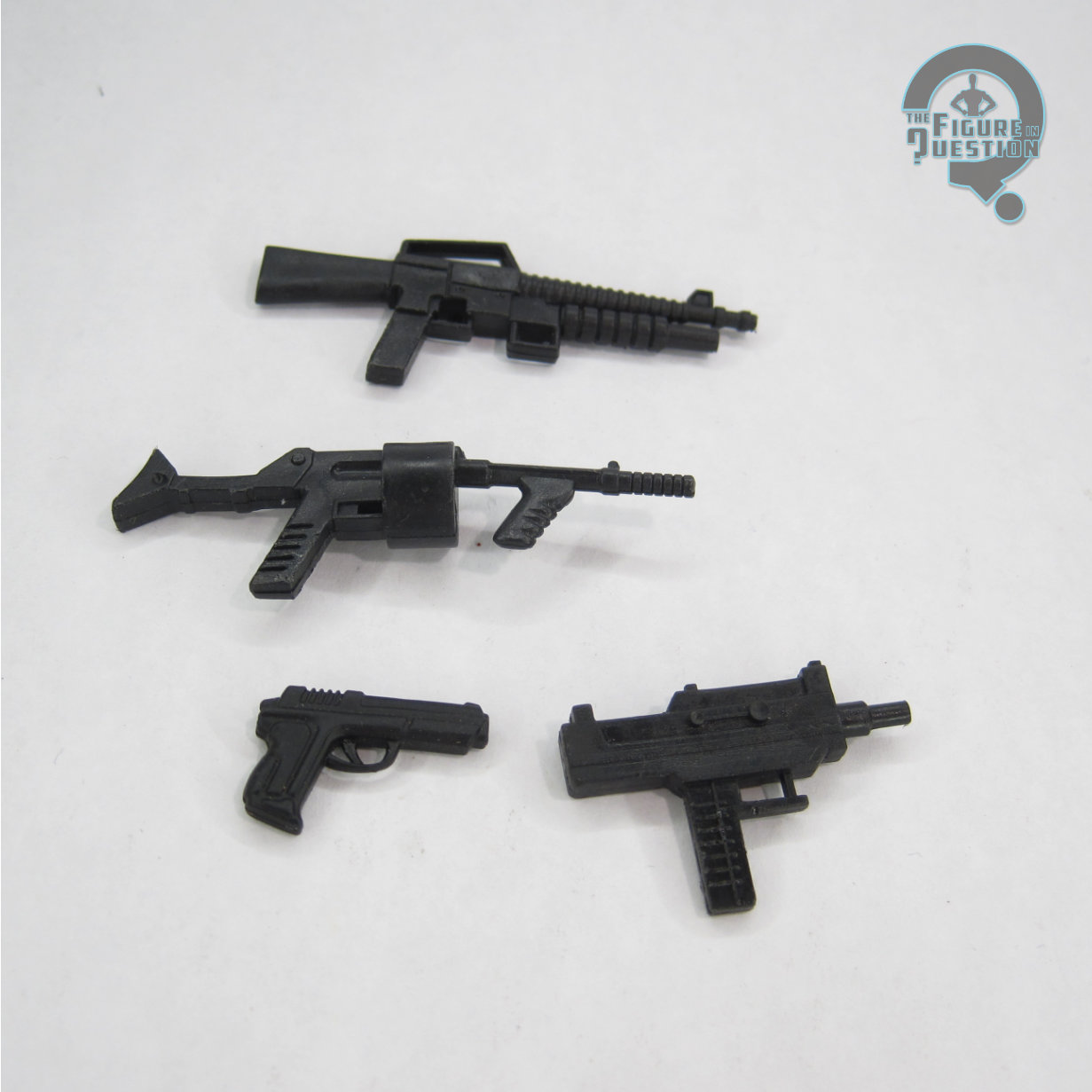 Kenner Robocop book and designed Punisher to have a cap firing feature, worked into the back of the figure’s torso. It’s a rather obvious construction, and doesn’t really line up with his design, so it represents hampering the final figure in a way that Toy Biz wasn’t really much for with later releases. His paintwork was fine, but not really anything special. There’s some decent base level work, and his insignia in particular is quite clean. Other areas are a bit more prone to slop, and like a lot of the earlier figures, he’s rather prone to wear. While the Punisher did *not* include the caps for his cap-firing feature, he did include four different weapons, though I don’t know that they’re quite the “Bazooka, Uzi, Pistol, & Sniper Rifle” indicated by the back of the box text. Pistol and Uzi, for sure, but the other two are clearly an M-16ish sort of rifle and a shotgun. Whatever the case, he can only hold them one at a time, which feels rather limiting, if I’m honest. But, the variety is nice regardless.