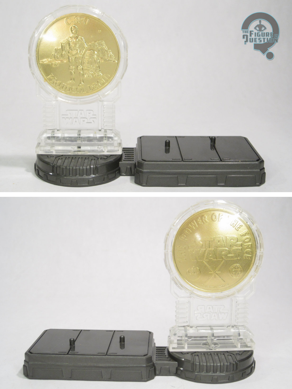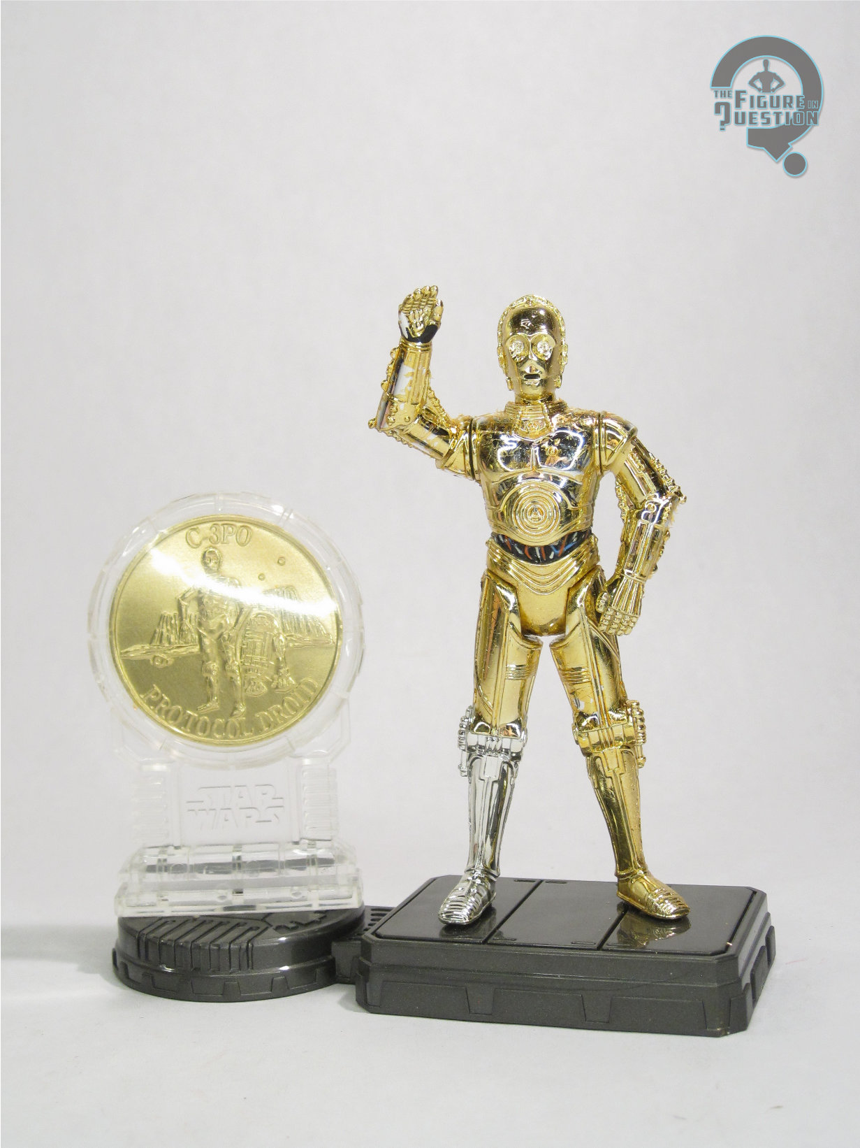 Last week’s Star Wars review was difficult for me to get into, but it was Palpatine, and I don’t much care for him. Maybe today’s will be easier, because it’s C-3PO, and I certainly find him preferable to Palpatine. My last 3PO review was almost a year ago, and there was a five year gap before that, so I guess he’s a bit infrequent here. He’s got one of the lowest review counts of all of the main OT characters, but I think that’s less about me not liking him, and more about him having less variety of looks, especially as he advances in the narrative. Kenner kept tinkering with different ideas for variants of him during their tenure with the license, and his penultimate release came from their obsession with coins, which has now become *my* obsession with coins.
