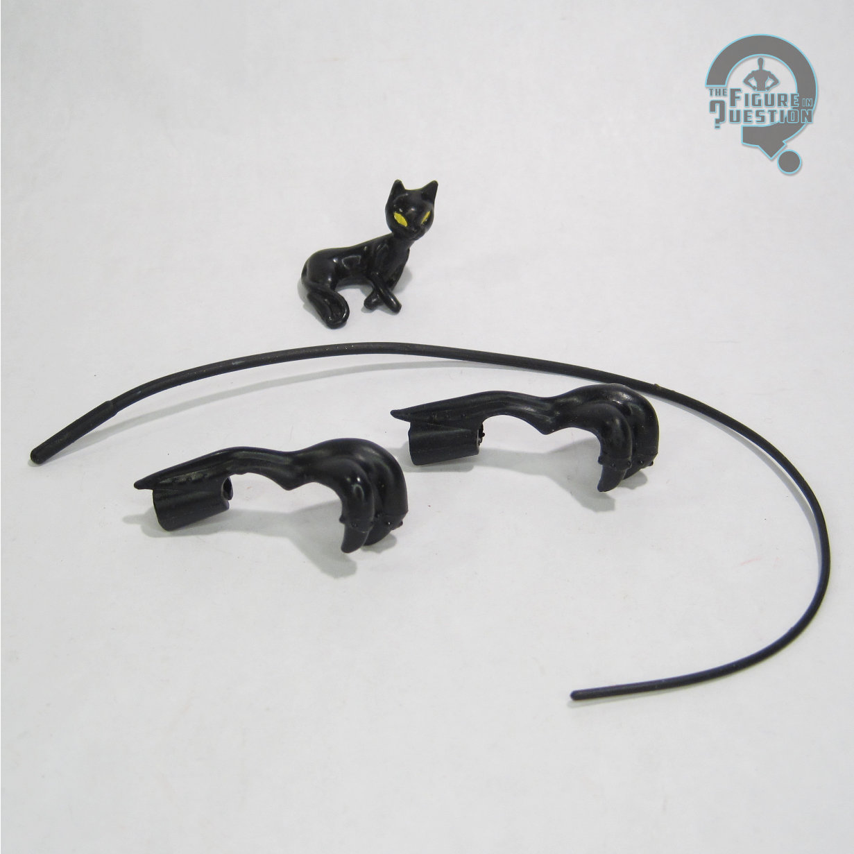 very stubby neck. Stubby is honestly just a pretty good descriptor for her in general, and it’s not quite in keeping with her more slender frame from the show. That said, all of the figures in the early run were a little stubby, so she’s not in the worst of company. Catwoman’s paint work is a decent match for how she looked on the show, and unlike the Robin from the same set, she doesn’t get saddled with any really out there shades or color replacements. The only notable thing here is that she’s a bit wall-eyed, which can look rather silly. Her eyes are a darker shade of green than the original figure, one of two notable changes on this release. Like her original release, Catwoman includes her whip, a pair off claw gauntlets, and a small figurine of her cat Isis. Isis is black for this release, in contrast to the grey of the original.