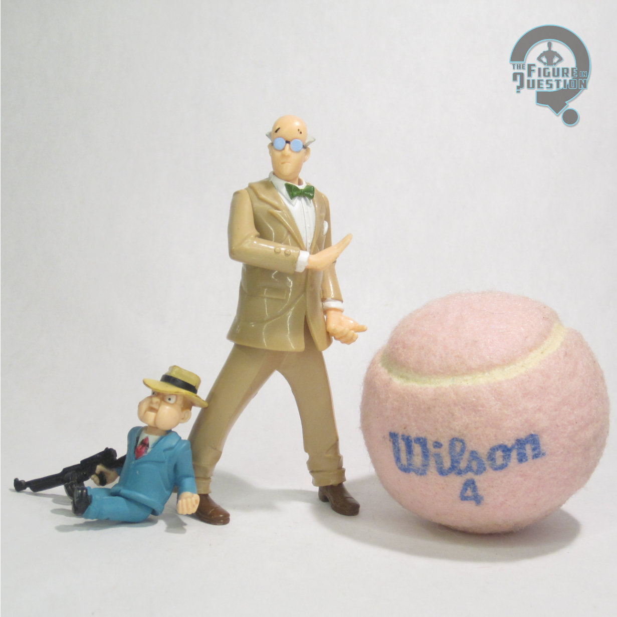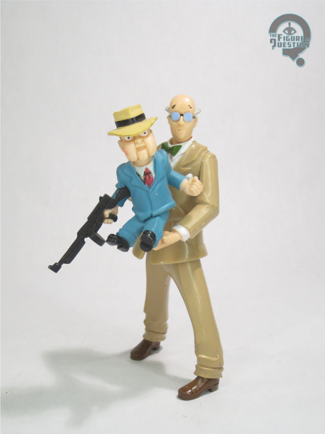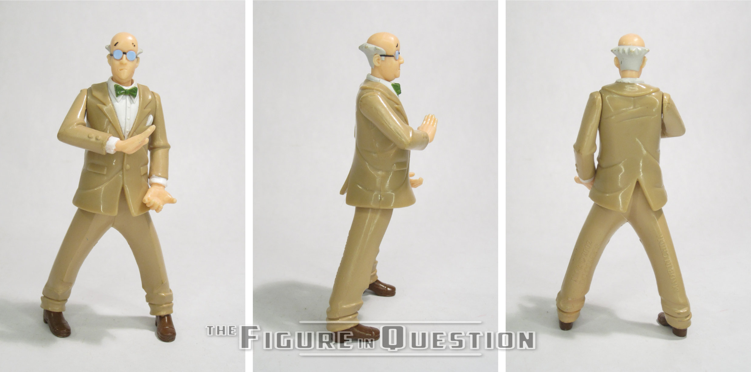The Ventriloquist with Scarface was released as part of the “Puppets of Crime” boxed set, released under Hasbro’s generic Batman line in 2002. Arnold was noteworthy for being the only new figure in the set, which was otherwise re-packs. The figure is just under 5 inches tall and has 4 points of articulation. His articulation is really, really restricted, to the point that he’s effectively just kind of a statue. There’s no movement in the legs, instead just a waist swivel, and while he’s got shoulder swivels, the posing of the arms means they get very little play. You can sort of move his head back and forth, so that’s cool. Also, without any leg movement, it can be a little tricky to find that sweet spot for keeping him standing. His sculpt is based on his BTAS design, which is his more conventionally approachable look. Generally speaking, it’s a good take on the look. The head in particular is pretty on the mark, capturing Arnold’s reserved expression well. The body sculpt’s got the crazy pre-posing going on which is odd. I mean, the arms are sensible enough, since they’re meant for holding the Scarface puppet. The legs, though, are weird in their wide stance and inward-pointing feet. Maybe it’s supposed to be a balance thing, but it doesn’t quite work out. In the show, he just stood with his legs together. That, with maybe a display stand, would have gone a long way. Also an odd is the coloring, which for some reason gives him a tan suit. Why tan? It’s not like it’s a particularly exciting color to shift to. Maybe the tan plastic was cheaper. The Ventriloquist was packed with Scarface, the most sensible possible accessory for him. It’s a pretty good piece, nicely scaled to the main figure, and matching the show model. Even the coloring’s not as wonky on him.