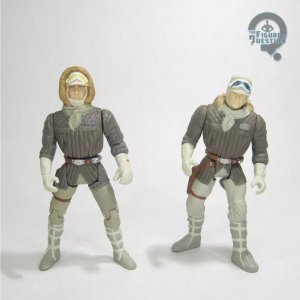 wearing but that is never actually seen in the movie, which was an odd choice. This one reverses that, pulling the hood back up, allowing for a more screen accurate appearance. His detailing is also far sharper on this one, a very nice shift from the very soft sculpt of the single. Even the paint is improved, with a bit more accenting to the fur lining of the hood, as well as changing the color of his goggles to the more proper yellow. Han is packed with a single blaster pistol, same as all the other Hans.