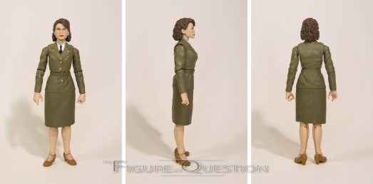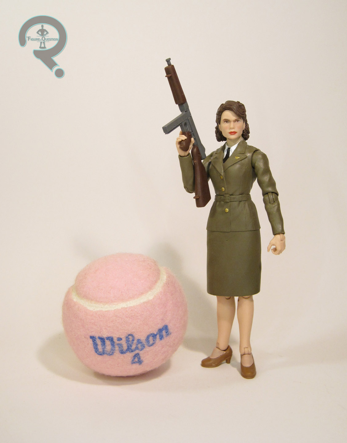 The lack of a proper Peggy Carter figure has been one of the most glaring problems for just about every MCU-based line (barring Minimates, which was previously the only way to get Peggy). Heck, we got a figure of the MCU version of *Sharon* Carter before Peggy. Do you know how crazy that is? It’s mega crazy, let me tell you. It’s about time she finally got her due, with a figure based on her primary appearance from The First Avenger. The figure stands just shy of 6 inches tall and has 29 points of articulation. While she has the expected issues of restricted hip articulation thanks to the skirt, beyond that she’s actually surprisingly well articulated. The waist joint in particular has some really solid range, effectively negating the lack of any mid-torso joint. Definitely a good example of tailoring the articulation to the design. Peggy’s sporting an all-new sculpt, and one I don’t imagine we’ll be seeing again soon (unless Hasbro feels like giving us a TV show Peggy, which I certainly wouldn’t mind). It’s another strong offering, working the articulation in well, while still getting down a pretty realistic set of proportions and properly adapting the details of the uniform. While the head’s not a spot-on Hayley Atwell likeness, it’s strong enough to sell who this is meant to be, and it’s about on par with the Evans likeness on Cap. Peggy’s paintwork is decent for the most part. The face paint is a bit messy on mine, and there was some excess glue from the hair, but boy do I love that the got the seams on the backs of her legs. That’s a really cool touch! Peggy includes a Thompson machine gun, or at least I’m saying that she does. It’s packed next to Cap in the packaging, but Peggy clearly is meant to hold something, and does use a Thompson in the film, so I’m counting it as hers.
