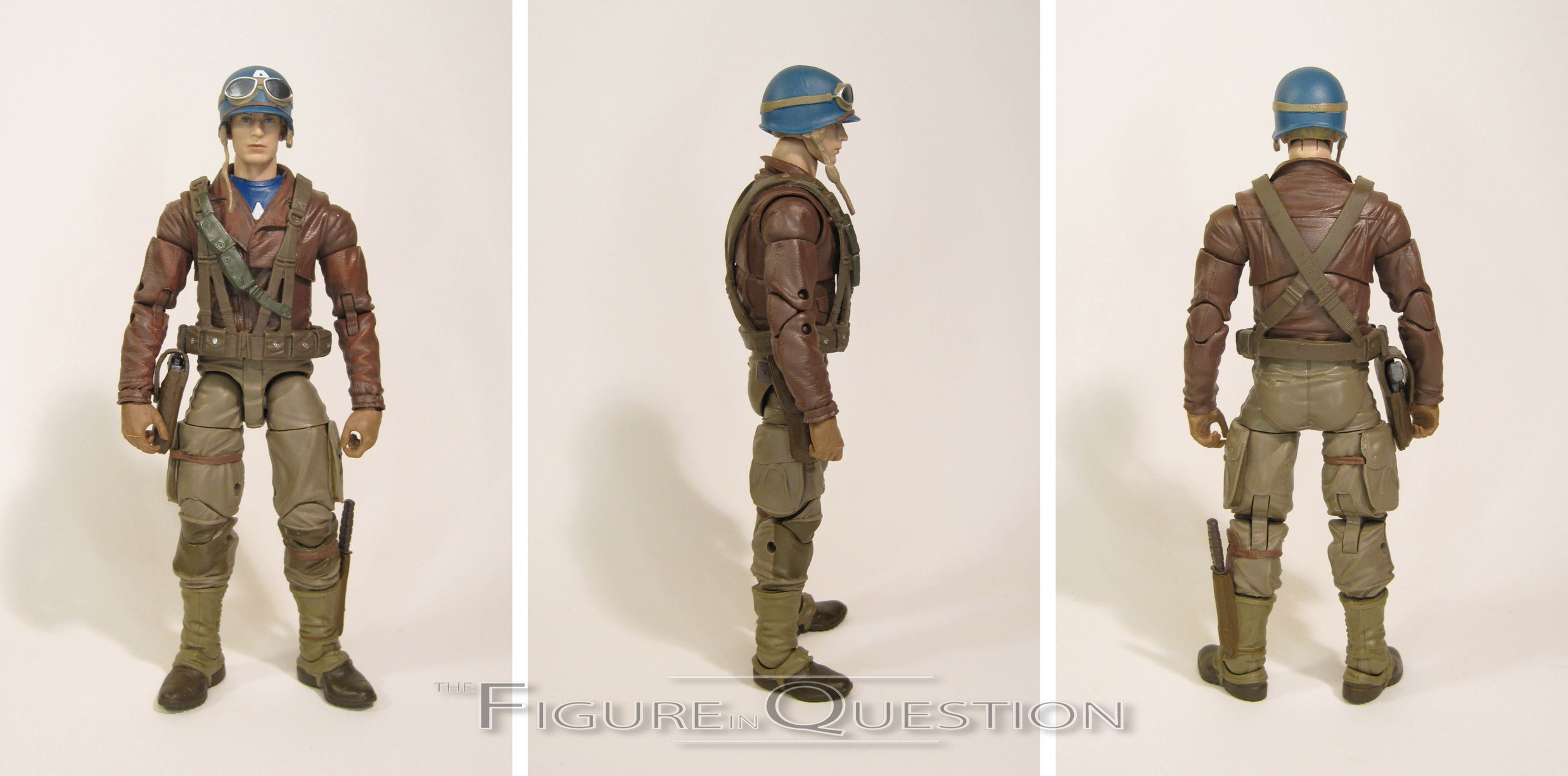 Before he became a full-fledged costumed hero, but after he’d given up being a patriotic monkey, Steve throws togething this distinctive number to go and rescue the POWs from the Hydra camp, in perhaps my favorite sequence of the movie. Hasbro wasn’t doing dedicated Legends for the movies when The First Avenger hit, so obviously there was no chance for a Rescue Cap there, but even worse, they didn’t even include one in their smaller-scale line. To get this look previously, you either had to settle for the Minimate or shell out the big bucks for the Hot Toys version. The figure stands 6 1/4 inches tall and he has 32 points of articulation. Cap is sporting an all-new sculpt, though it’s one that’s already been earmarked for re-use for the upcoming Legendary Riders WWII Cap figure. It’s clearly been designed for accuracy to this particular look first and foremost, however. After a number of MCU Cap figures that were a little bit scrawny, this one does a respectable job of looking the part. The neck is a touch longer than I’d like, and some of the details on the uniform are softer than other recent offerings, but by and large, it’s a solid sculpt, and does the design justice. Cap includes two different heads, which are slightly difficult
